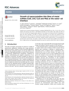 Growth of nanocrystalline thin films of metal sulfides [CdS, ZnS, CuS and PbS] at the water–oil interface.