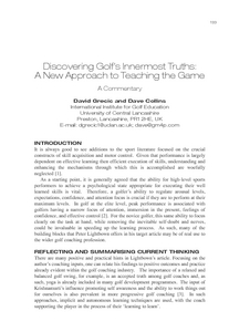 Discovering golf's innermost truths: A new approach to teaching the game: A Commentary.