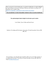 This paper considers the personal epistemology of adventure sports coaches, the existence of the epistemological chain and its impact on professional judgment and decision-making. The epistemological chain’s role and operationalization in other fields is considered, offering clues to how it may manifest itself in the adventure sports coach context. High-level adventure sports coaches were interviewed and an interpretive phenomenological analysis approach was adopted for the interview transcripts. Based on these data, we suggest that the epistemological chain provides the criteria by which adventure sports coaches measure the success of their coaching practice in the field and, further, that this epistemological chain also underpins the professional judgment and decision-making process.