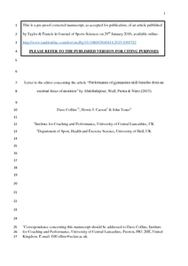 Letter to the editor concerning the article “Performance of gymnastics skill benefits from an external focus of attention” by Abdollahipour, Wulf, Psotta & Nieto (2015).