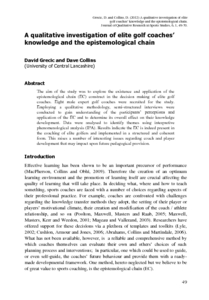 A qualitative investigation of elite golf coaches' knowledge and the epistemological chain.