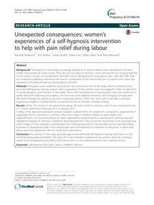 Unexpected Consequences: Women’s experiences of a self-hypnosis intervention to help with pain relief during labour.