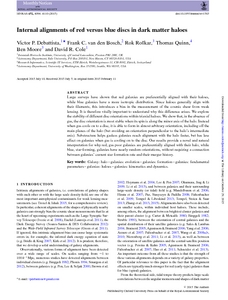 Internal alignments of red versus blue discs in dark matter haloes.