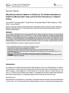 Why Machiavellianism Matters in Childhood: The Relationship Between Children's Machiavellian Traits and Their Peer Interactions in a Natural Setting