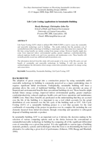 Hartungi, Rusdy and Pye, Christopher John (2009) Life Cycle Costing Applications in Sustainable Building. In: Theorizing Sustainable Architecture: Sustainable Building Design (SBD09), 12 - 13 August 2009, Edge Hill University.