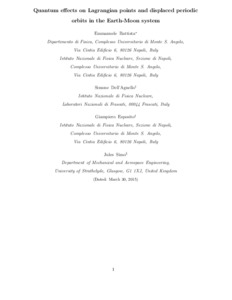 Quantum effects on Lagrangian points and displaced periodic orbits in the Earth-Moon system.