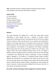 Free coffee and cake! A retention initiative to promote first year business school students’ social interaction with their peers and staff.