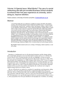 The use of a social networking site with pre-enrolled Business School students to enhance their first year experience at university, and in doing so, improve retention.