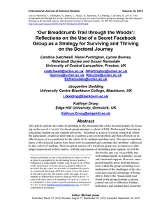 �Our Breadcrumb Trail through the Woods�: Reflections on the Use of a Secret Facebook Group as a Strategy for Surviving and Thriving on the Doctoral Journey.