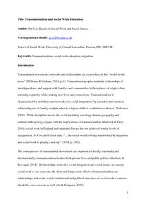 Transnationalism and Social Work Education.