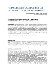Intermittent auscultation is the technique used to listen to the fetal heart rate (FHR) for short periods of time without a display of the resulting pattern. Whether it is used for intrapartum fetal monitoring in low-risk women or for all cases in settings where there are no available alternatives, all healthcare professionals attending labor and delivery need to be skilled at performing intermittent auscultation, interpreting its findings, and taking appropriate action. The main aim of this chapter is to describe the tools and techniques for intermittent auscultation in labor.