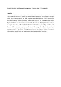 Female directors and earnings management: Evidence from UK companies.