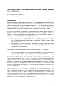 Turning the Tables - The Vulnerability of Nurses Treating Anorexia Nervosa Patients.