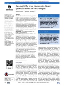 Racecadotril for acute diarrhoea in children: systematic review and meta-analyses.