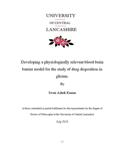 Kumar, Swati Ashok (2015) Developing a physiologically relevant blood brain barrier model for the study of drug disposition in glioma. Doctoral thesis, University of Central Lancashire.