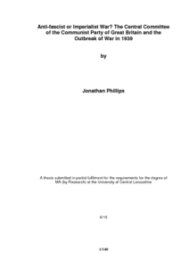 Phillips, Jonathan David (2015) Anti-Fascist or Imperialist War? The Central Committee of the Communist Party of Great Britain and the Outbreak of War in 1939. Masters thesis, University of Central Lancashire.