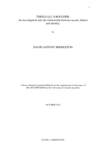 Middleton, David Antony (2015) THRELFALL’S BOULDER: An investigation into the relationship between accent, dialect and identity. Masters thesis, University of Central Lancashire.