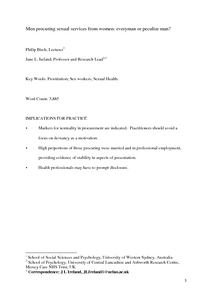 Conclusion: The results do not support men’s procurement as primarily ‘deviant’. Commonality of procurement and similarities across motivations lends support to the ‘everyman’ perspective. Professionals may need to explicitly enquire about such behaviour where relevant to do so (e.g. in discussing sexual health) and in doing so ensure procurement is discussed as normative and not as unusual behaviour.