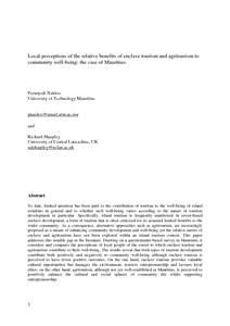 Local perceptions of the relative contributions of enclave tourism and agritourism to community well-being: The case of Mauritius