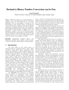 Polycarpou, Irene (2014) Decimal to Binary Number Conversion can be Fun. In: 2014 International Conference on Frontiers in Education: Computer Science and Computer Engineering (FECS 2014), 21-24 July 2014, Las Vegas, USA.