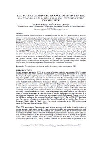 The Future of private Finance Initiative in the UK: Value for Money from Main Contractors’ Perspective