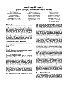 Mobilising Monopoly:game design, place and social values.