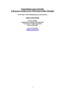 Existentialism and Leadership: A Response to John Lawler with Some Further Thoughts. (deposited 19 Aug 2013 14:06)