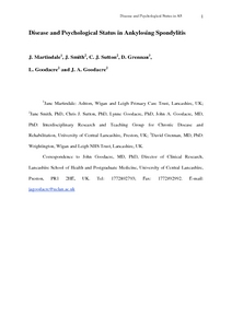 Conclusions. Disease status scores in AS correlated significantly with anxiety, depression, internality and health status. Interpretation of AS disease scores should take an account of psychological status and the choice of measures used. These findings have important potential applications in AS management and monitoring, including the identification of patients for biological therapies.