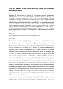 Spirituality has been theorised as a characteristic of late-modern society, a consequence of individualisation and of a relativized marketplace of religion. Drawing on findings from ethnographic fieldwork conducted with Muslim musicians in the UK, the author claims that spirituality can indeed be considered a postmodern discourse of belief – with trans-religious applicability – but that at the same time it can be articulated from within a clear understanding of group/religious membership. The concepts of ‘spiritual capital’ and ‘expressive communalism’ are used to explain the ways through which a postmodern discourse of spirituality is utilised by Muslim musicians from within contemporary networks of Sufism in the West. The author suggests that the cosmopolitan and inclusive nature of these types of Sufism in Britain – particularly amongst third and fourth generation Muslims – represents a frontier of religious change in the UK and a challenge to traditional forms of religious authority, discourse and membership.