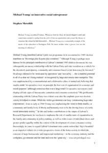 This chapter attempts to locate Michael Young, the architect of the party's state-centric 1945 election manifesto and subsequent social democratic 'radical' in his advocacy of social programmes based on community, family and individual initiatives, in longer historic traditions of Labour's non-state socialist development.