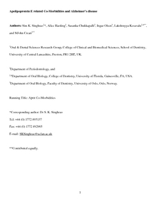 Apolipoprotein E related Co-Morbidities and Alzheimer’s disease.