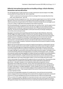 International perspectives on healthy settings: critical reflections, innovations and new directions.