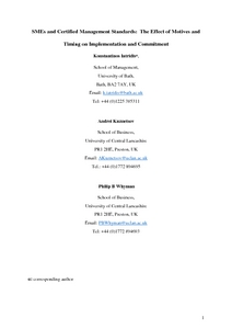 SMEs and Certified Management Standards: The Effect of Motives and Timing on Implementation and Commitment.