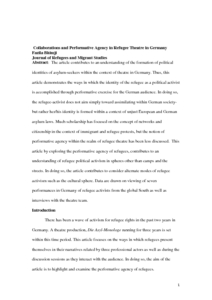 Collaborations and Performative Agency in Refugee Theatre in Germany.