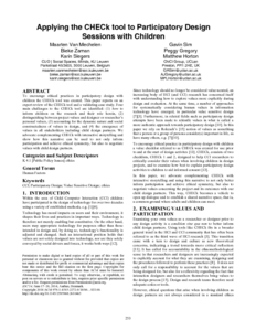 Van Mechelen, Maarten, Sim, Gavin Robert orcid iconORCID: 0000-0002-9713-9388, Zaman, Bieke, Gregory, Peggy orcid iconORCID: 0000-0001-7891-6666, Slegers, Karin and Horton, Matthew Paul Leslie orcid iconORCID: 0000-0003-2932-2233 (2014) Applying the CHECk tool to Participatory Design Sessions with Children. In: IDC '14 Proceedings of the 2014 conference on Interaction design and children, 2014, Denmark.