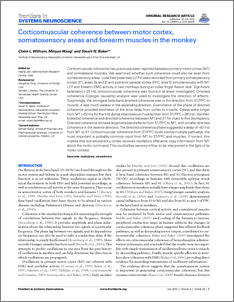 Witham, Claire L., Wang, Minyan and Baker, Stuart (2010) Corticomuscular coherence between motor cortex, somatosensory areas and forearm muscles in the monkey. Frontiers in Systems Neuroscience, 4 (38). ISSN 1662-5137