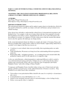 The challenge of building professional relations across cultures: Chinese officials in America.