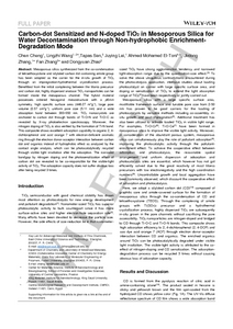 Carbon-Dot-Sensitized, Nitrogen-Doped TiO2in Mesoporous Silica for Water Decontamination through Nonhydrophobic Enrichment-Degradation Mode.