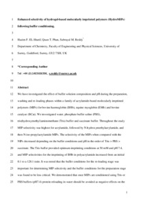 Enhanced selectivity of hydrogel-based molecularly imprinted polymers (HydroMIPs) following buffer conditioning.