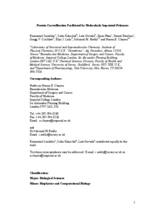 Protein crystallization facilitated by molecularly imprinted polymers.