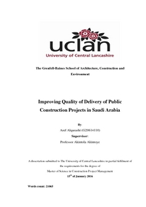 Alqurashi, Aref (2016) Improving quality of delivery of public construction projects in Saudi Arabia. [Dissertation]