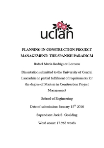 Lorenzo, Rafael, M, R (2016) Planning in construction project management: the spanish paradigm. [Dissertation]