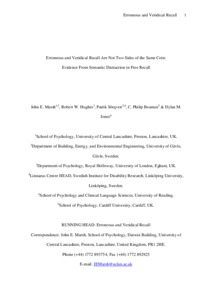 Erroneous and Veridical Recall Are Not Two Sides of the Same Coin: Evidence From Semantic Distraction in Free Recall.