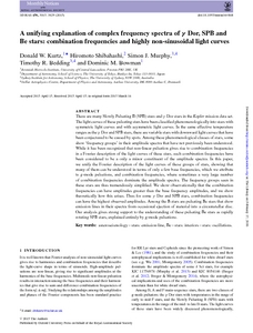 Kurtz, Donald Wayne orcid iconORCID: 0000-0002-1015-3268, Shibahashi, H., Murphy, S. J., Bedding, T. R. and Bowman, D. M. (2015) A unifying explanation of complex frequency spectra of gamma Dor, SPB and Be stars: combination frequencies and highly non-sinusoidal light curves. Monthly Notices of the Royal Astronomical Society, 450 (3). pp. 3015-3029. ISSN 0035-8711