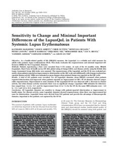 Sensitivity to Change (Responsiveness) and Minimal Important Differences of the LupusQoL in patients with Systemic Lupus Erythematosus.