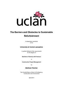 Fletcher, Mathew (2015) The barriers and obstacles to sustainable refurbishment. [Dissertation]