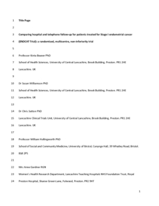 Comparing hospital and telephone follow-up for patients treated for Stage I endometrial cancer 3 (ENDCAT Trial): a randomised, multicentre, non-inferiority trial.
