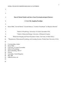 Shared mental models and intra-team psychophysiological patterns: A test of the juggling paradigm.
