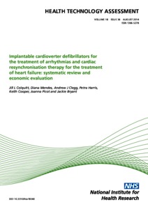 Colquitt, Jill L, Mendes, Diana, Clegg, Andrew J, Harris, Petra, Cooper, Keith, Picot, Joanna and Bryant, Jackie (2014) Implantable cardioverter defibrillators for the treatment of arrhythmias and cardiac resynchronisation therapy for the treatment of heart failure: systematic review and economic evaluation. Health Technology Assessment, 18 (56). pp. 1-560. ISSN 1366-5278