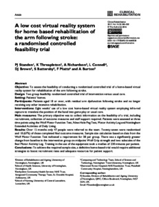 A low cost virtual reality system for home based rehabilitation of the arm following stroke: a randomised controlled feasibility trial.